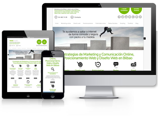 Debido a la influencia de las plataformas móviles utilizadas para la visualización de páginas web, vemos un incremento importante en la solicitud de diseño web adaptable a móviles y tablets. El diseño responsivo o adaptable nace de la necesidad de mostrar de forma correcta y optimizada una misma web en un ordenador de sobremesa, una tabet o un móvil. ¿Cómo lo hacemos?. A partir de un mismo diseño, optimizamos resoluciones, estructuras de información, velocidades de carga, posicionamiento de los botones de navegación para que por ejemplo en un móvil sea igual de cómodo de navegar que desde un portátil.