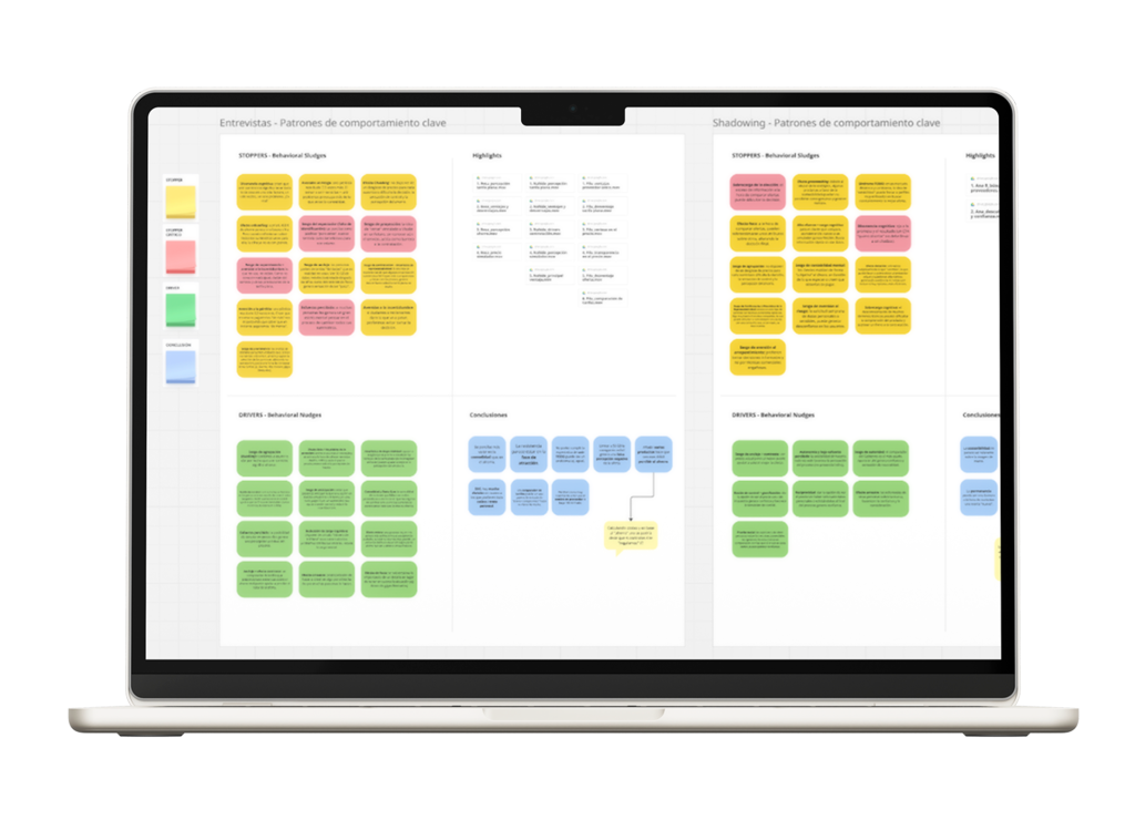 Diseñamos una investigación cualitativa (entrevistas, focus groups, shadowing) para explorar cómo se entendía el producto y qué emociones generaba.